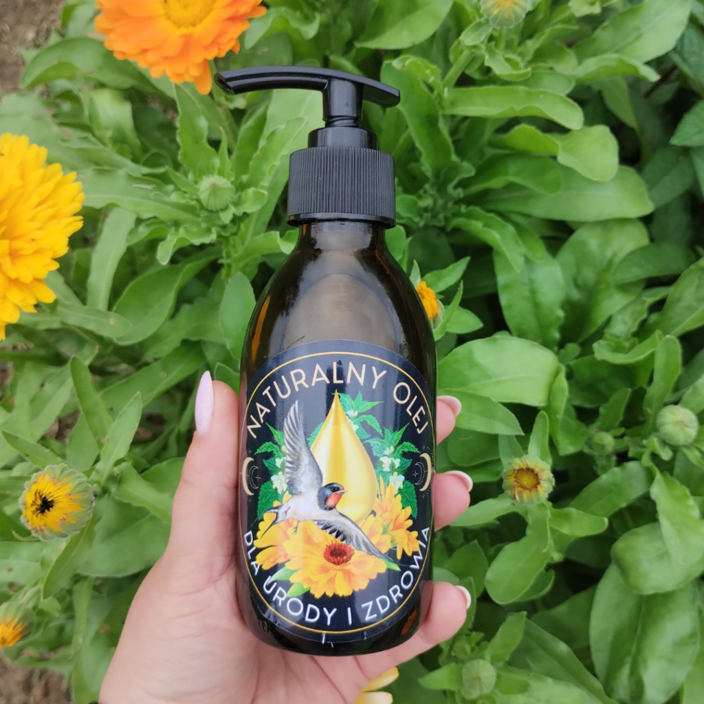Naturalny olej z nagietka, glistnika jaskółcze ziele i pokrzywy (200ml)